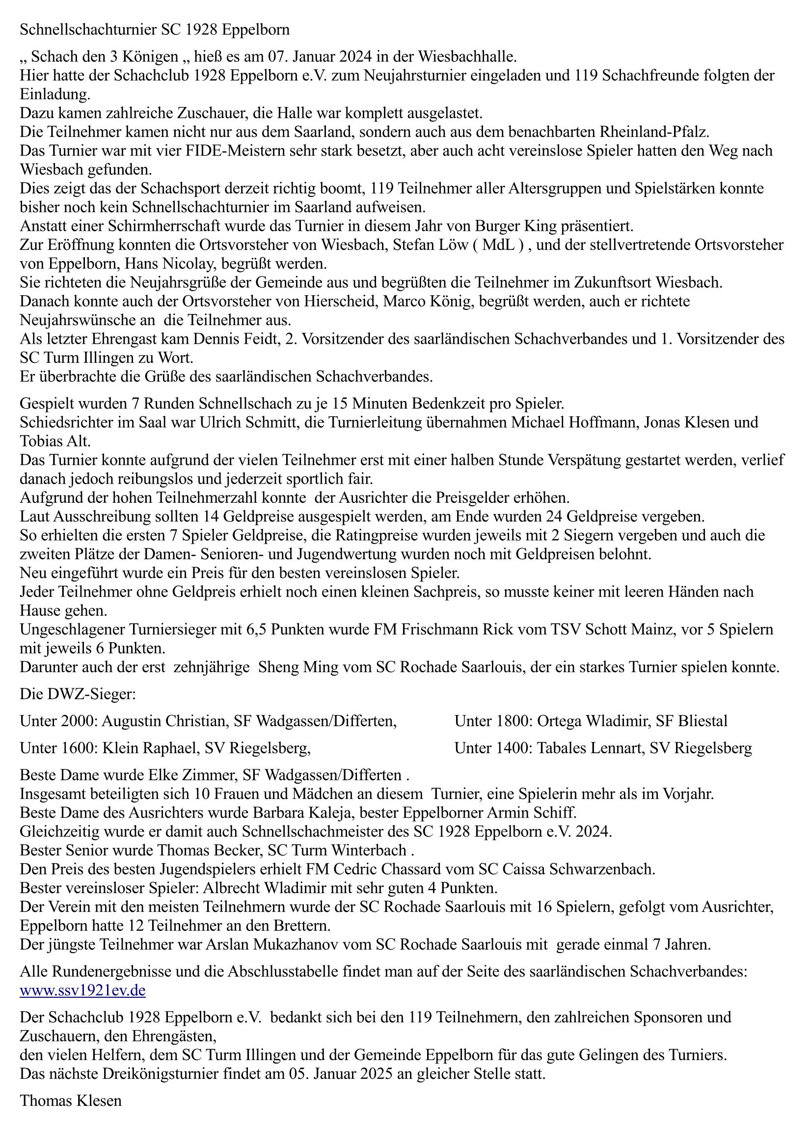 Dreikönigsturnier Eppelborn 2024: Tabelle